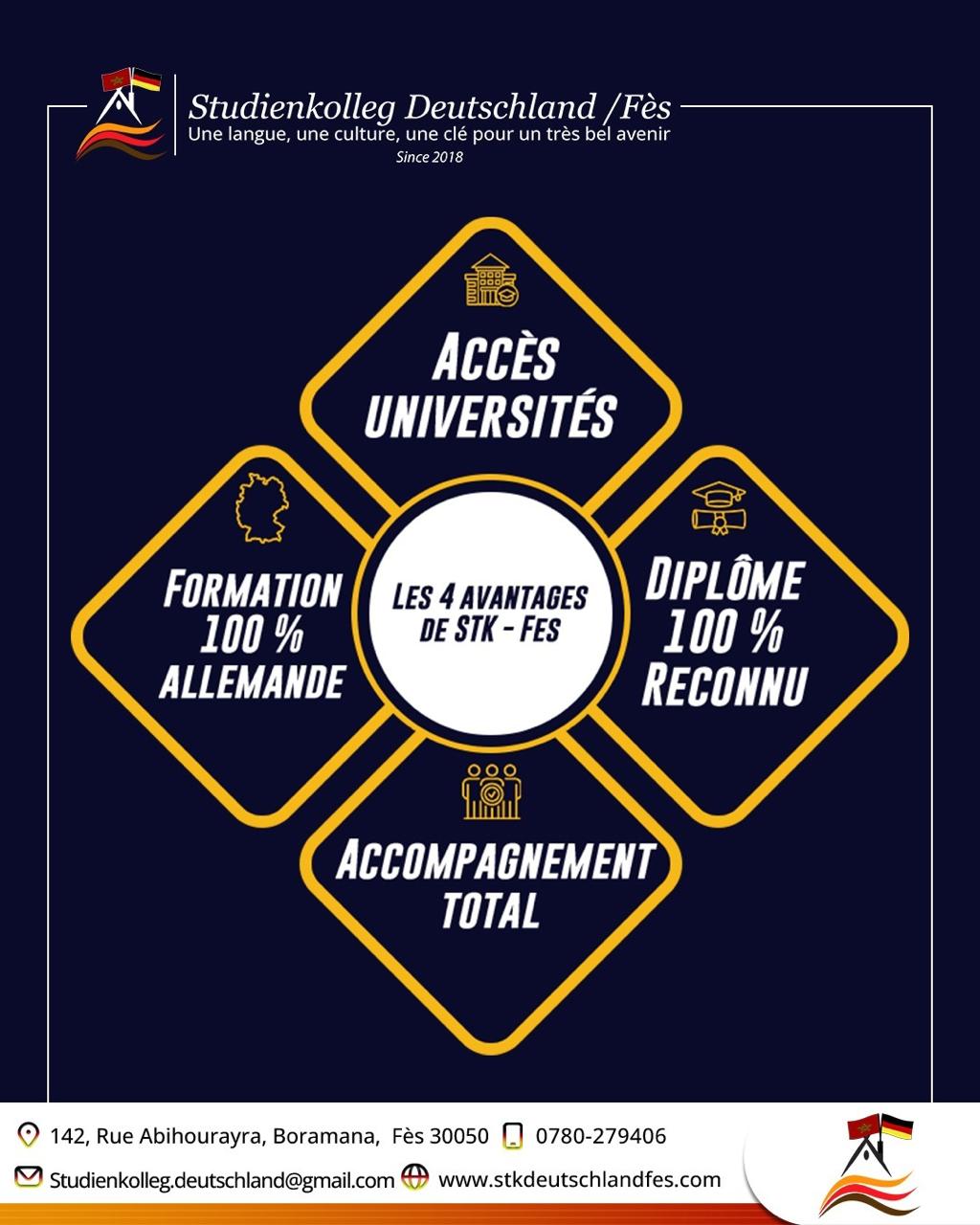 Depuis 2018, Studienkolleg Deutschland / Fès accompagne les étudiants marocains dans leur projet d’études en Allemagne, en leur offrant une préparation linguistique, académique et culturelle de qualité. Pourquoi choisir...
